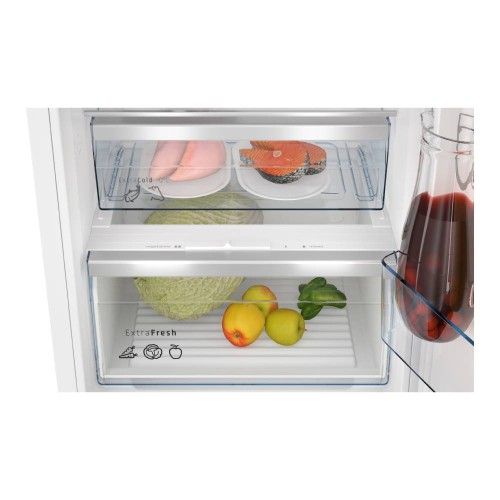 El frigorífico Balay 3KID834F, con su diseño integrable y puertas reversibles, se fusiona a la perfección con el estilo de tu cocina. Incluye un cajón ExtraFresh para frutas y verduras y otro ExtraCold ideal para almacenar bebidas, carnes y pescados. Las bandejas de cristal de seguridad son ajustables y extraíbles, facilitando la organización interna. Además, cuenta con un práctico soporte de acero para botellas.