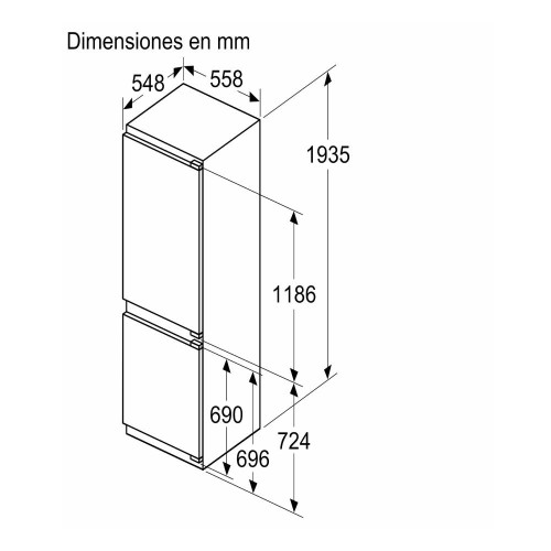 - Dimensiones de instalación (alto, ancho y fondo): 1935 x 558 x 548 mm